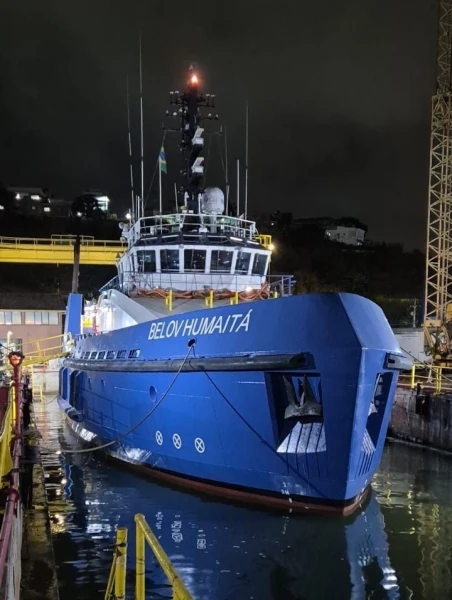 The vessel Belov Humaitá completed its second dry docking this Friday (7), at the São José Shipyard, in São Gonçalo, RJ. The updates, which range from a specialized paint job to the installation of new features, will provide more crew comfort, better vehicle performance, and increased operational safety.